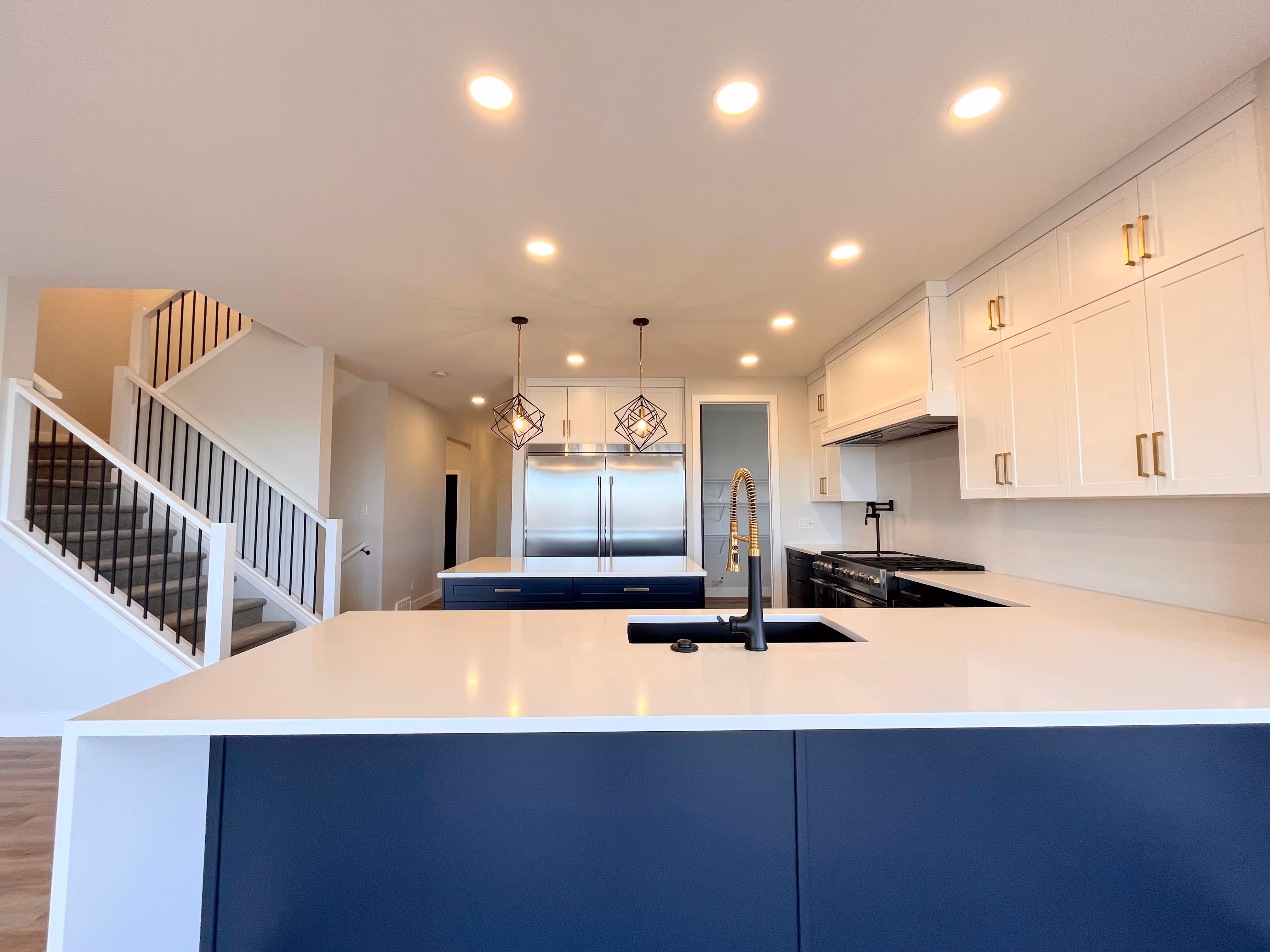 Our 6-bedroom two-story home offers 3,534 square feet of living space. The large primary suite features his-and-her separate closets, a tub, shower, and a private water closet. Every room in this home is oversized, and the main floor includes a generous office, mudroom, butler pantry, island, and eating peninsula. The triple-car garage provides plenty of parking space.